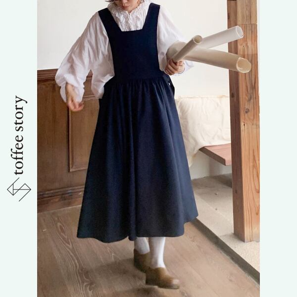 紺の余白と静かな物語サロペット 《W0194》