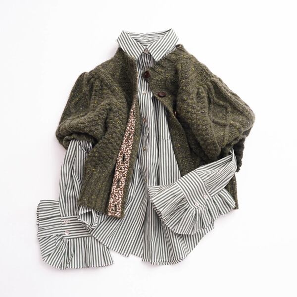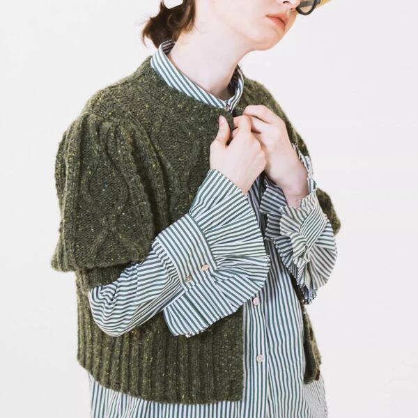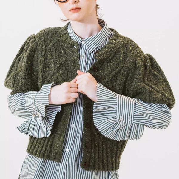 立体感のあるケーブル編みと、ふんわりとした袖のシルエットが魅力のWOKERKERカーディガン