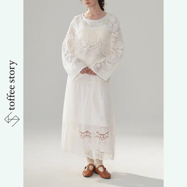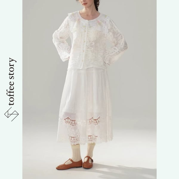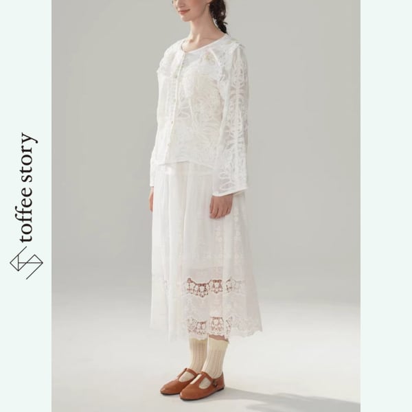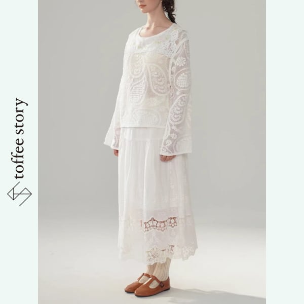 【2color】透かし模様に光が宿るコットン刺繍スカート 《Y0355》