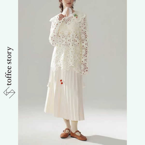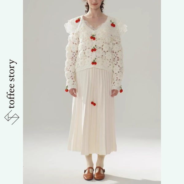 赤い果実が揺れるミルキープリーツスカート 《Y0356》