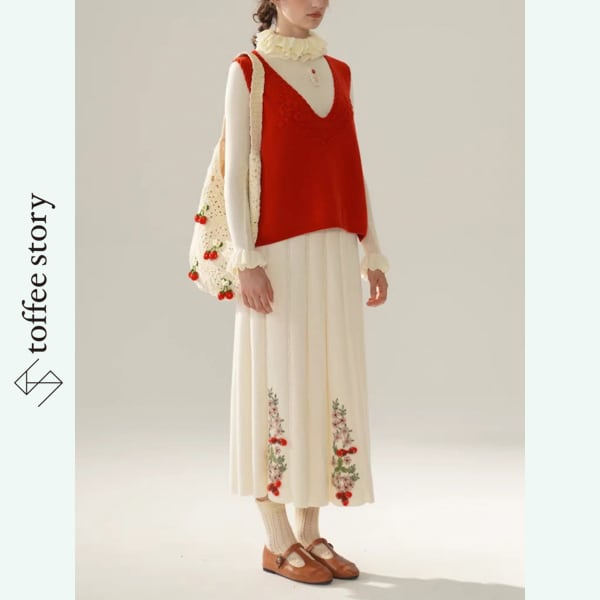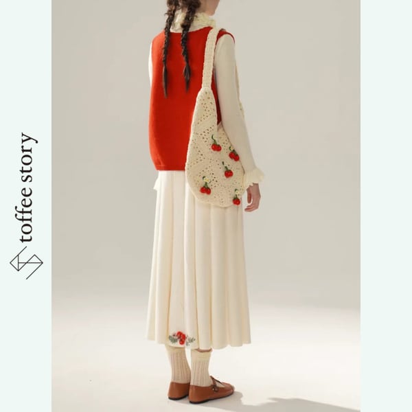 赤い果実を編み込んだショルダーバッグ 《Y0357》