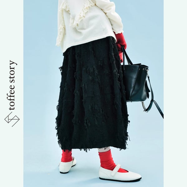 繊細なフリンジが光と影を遊ぶ、imakokoniのランタンスカート。