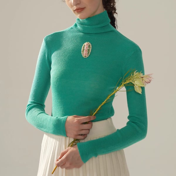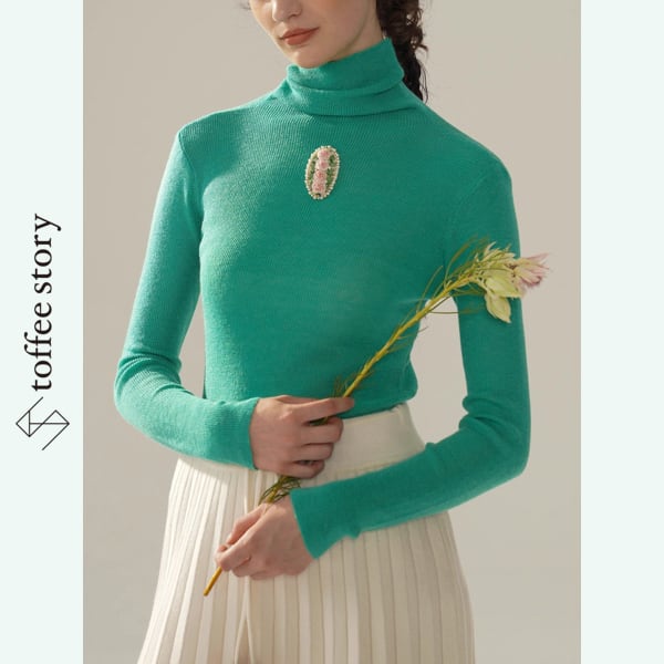 胸に花の記憶を灯すタートルニットトップ 《Y0366》