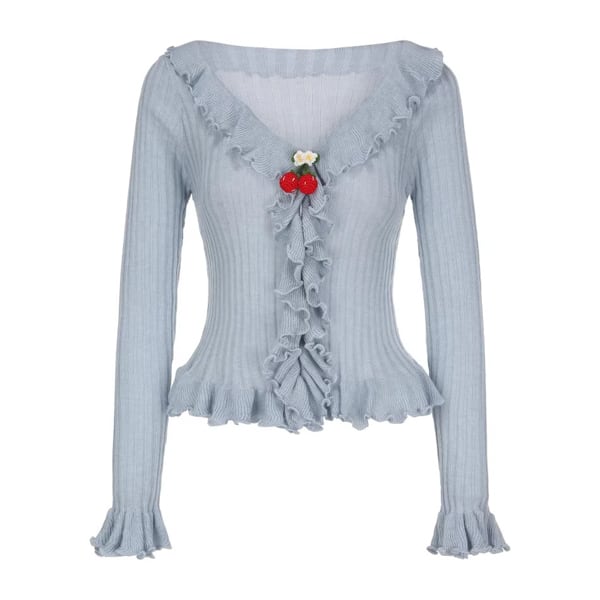【3color】さくらんぼが微笑むフリルリブトップス 《Y0368》