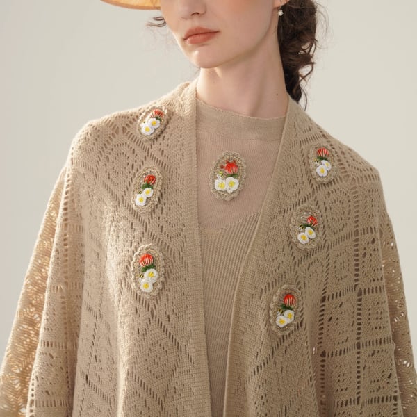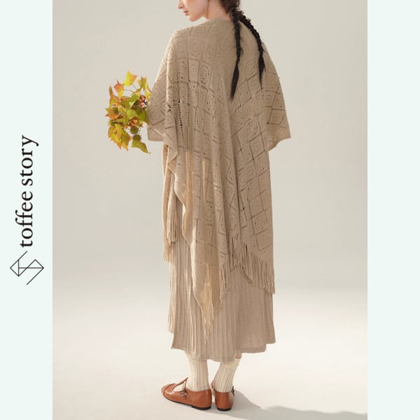 繊細な透かし編みと優雅なタッセルの縁取りが印象的な、Facer Yisenらしい一枚