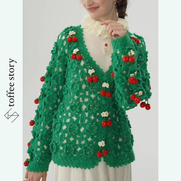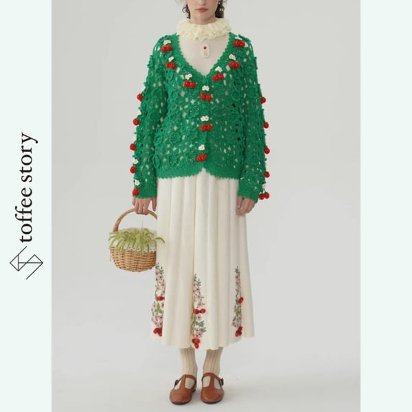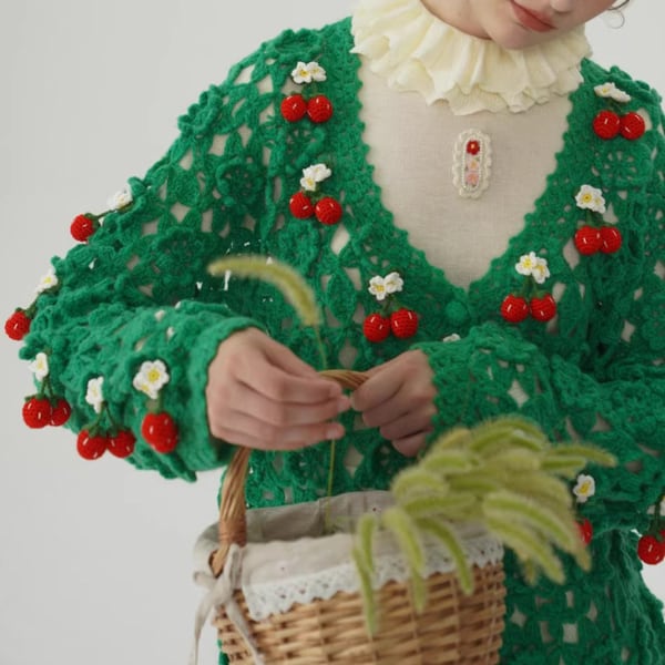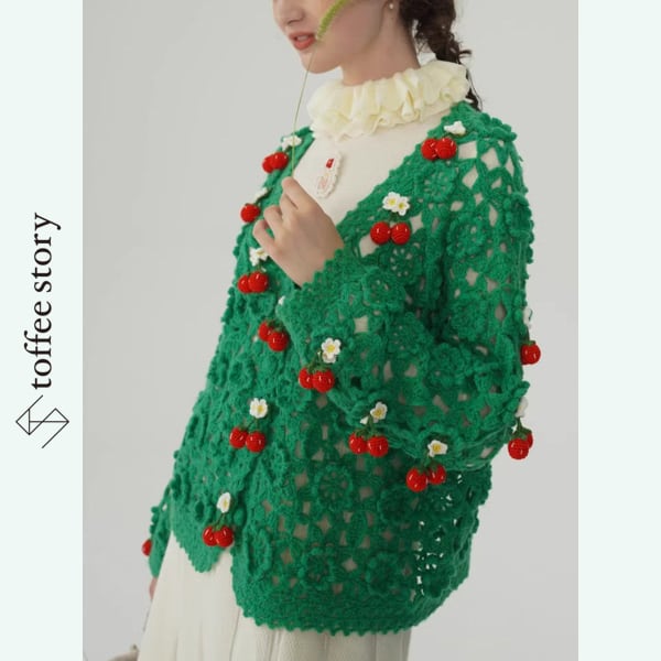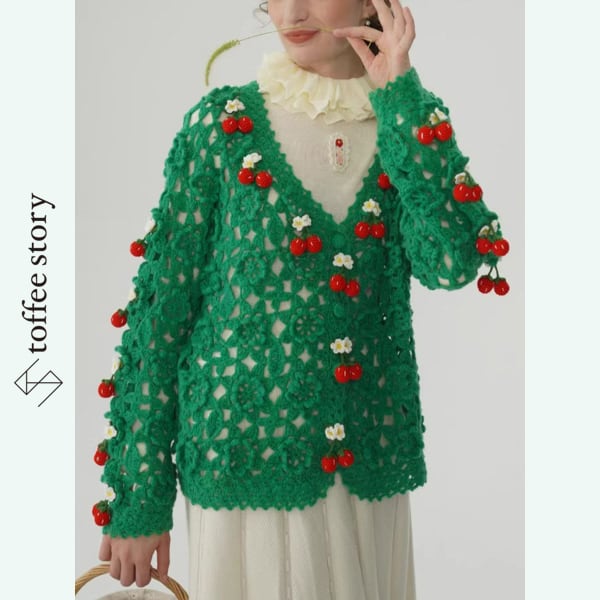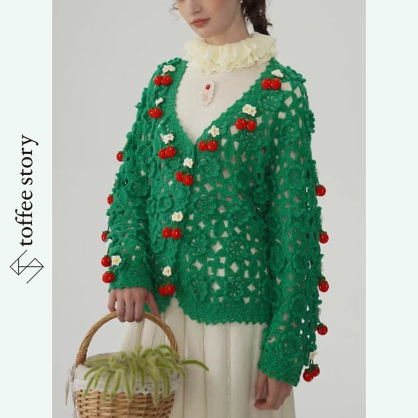 さくらんぼ装飾の透かし編みニット 《Y0385》