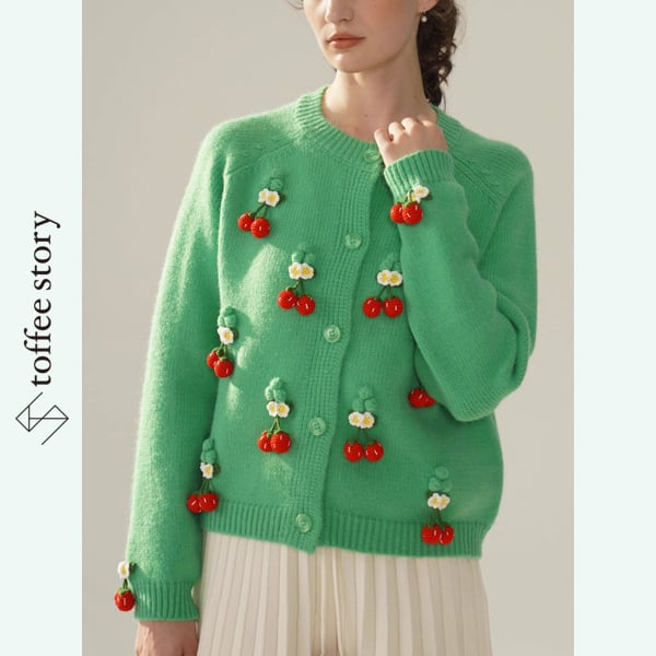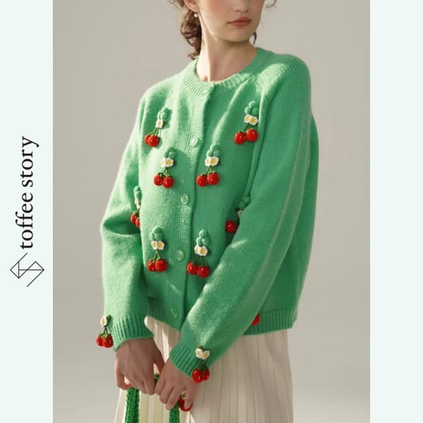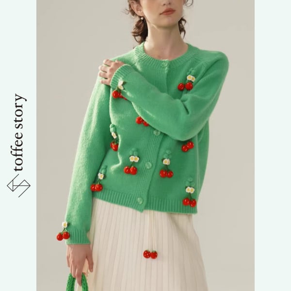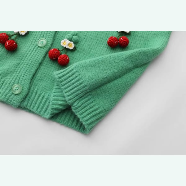さくらんぼ舞うグリーンニットカーディガン 《Y0387》
