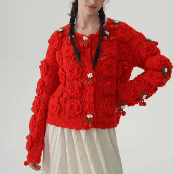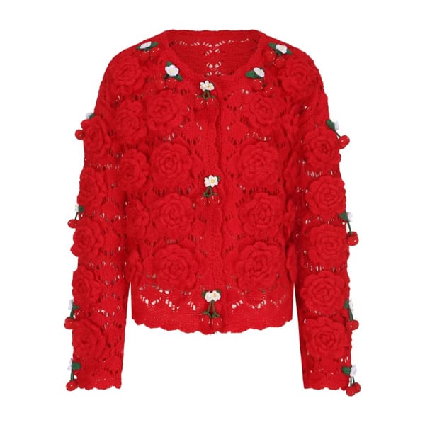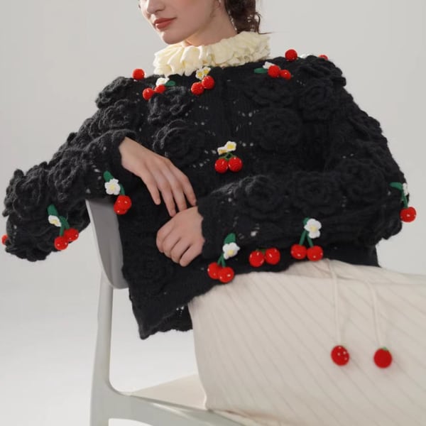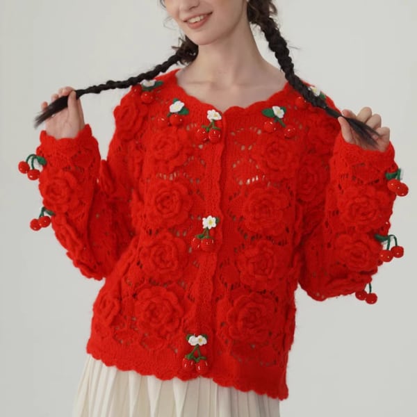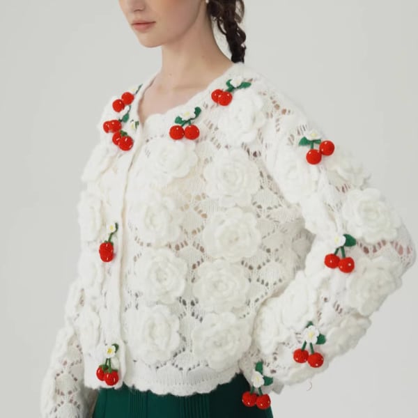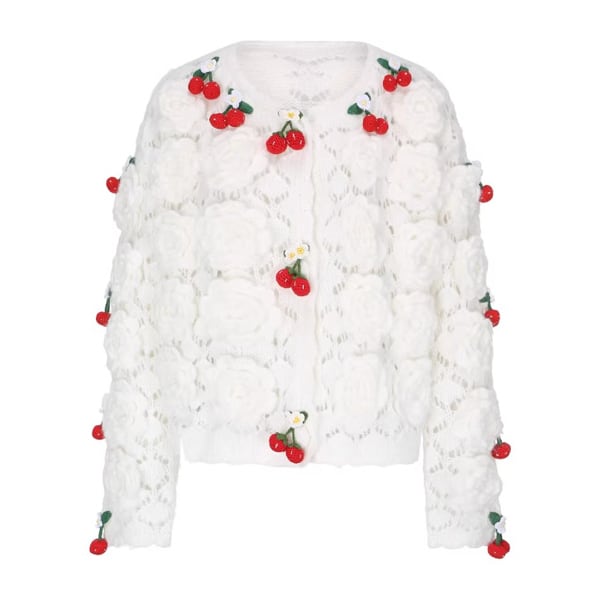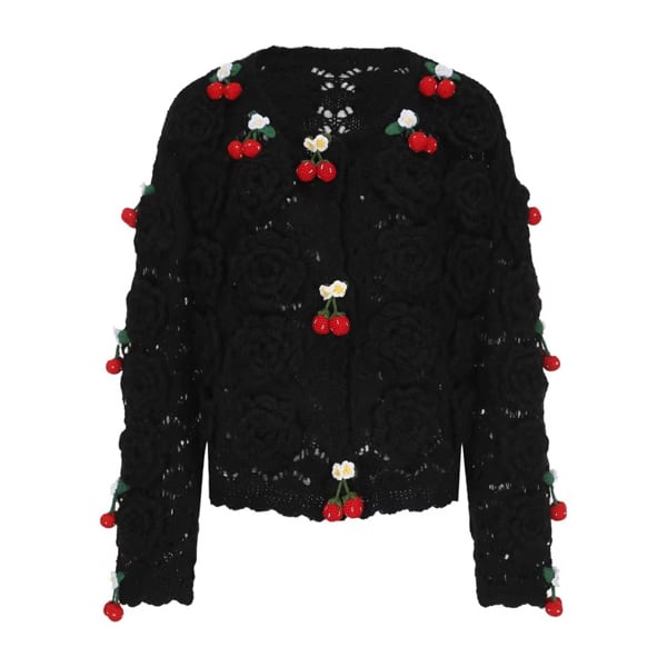 【3color】編みバラとさくらんぼの夢カーディガン 《Y0388》
