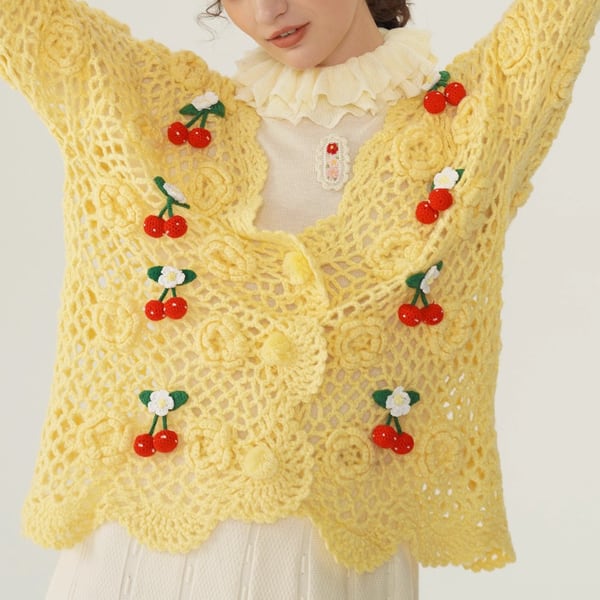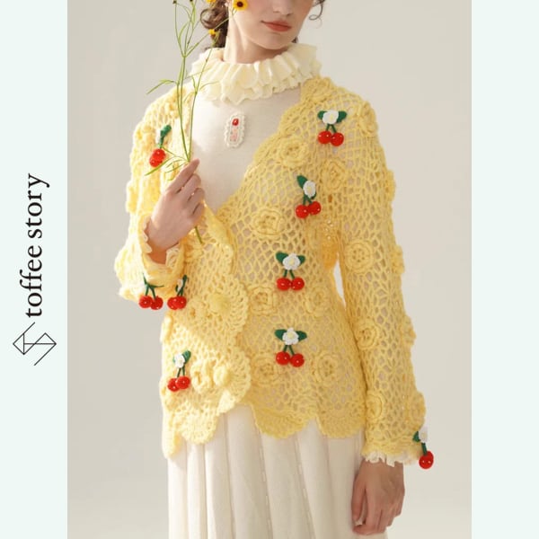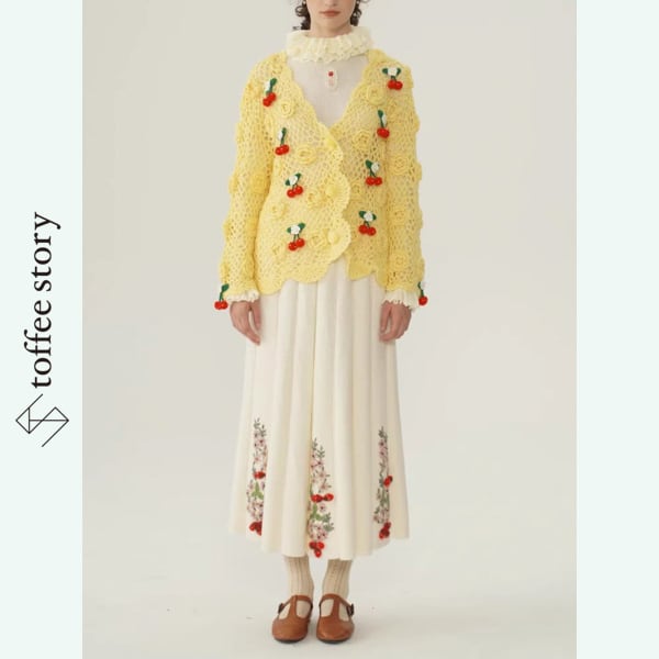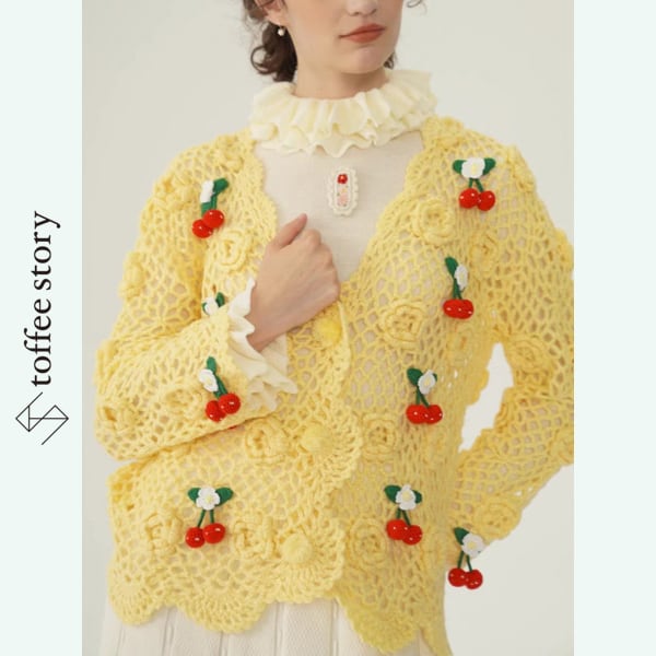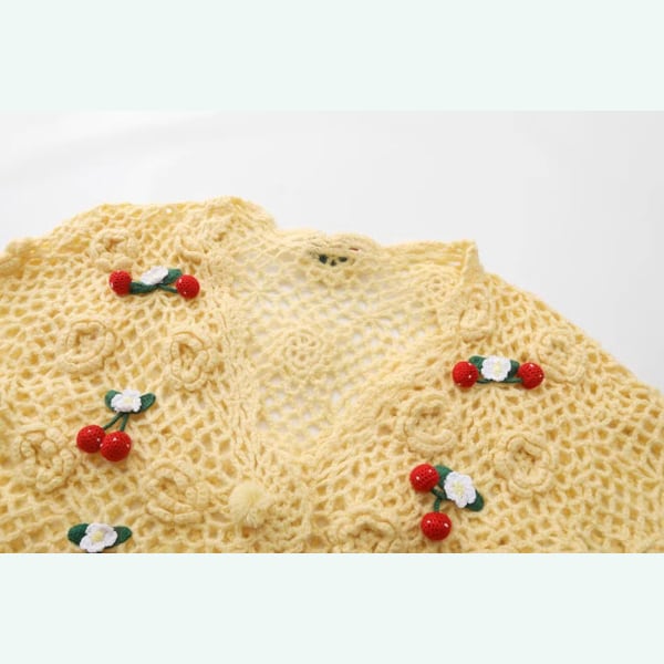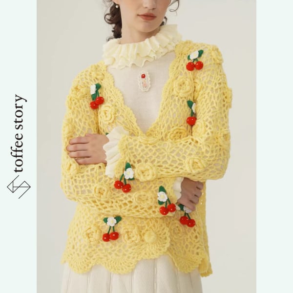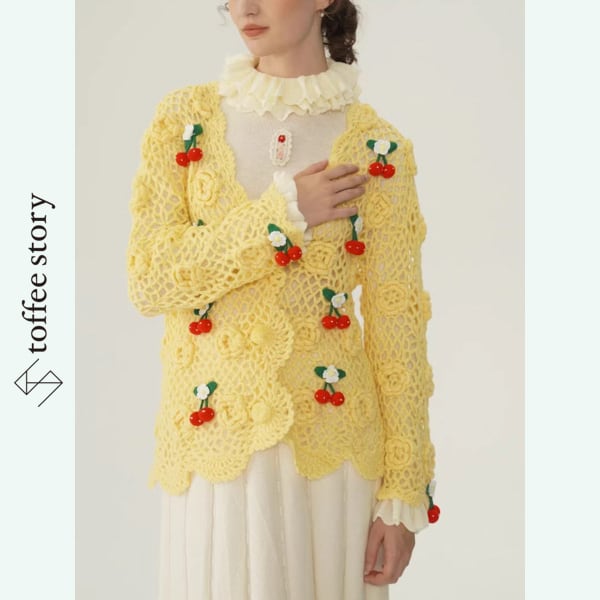 さくらんぼと花咲く陽だまり編みカーディガン《Y0390》
