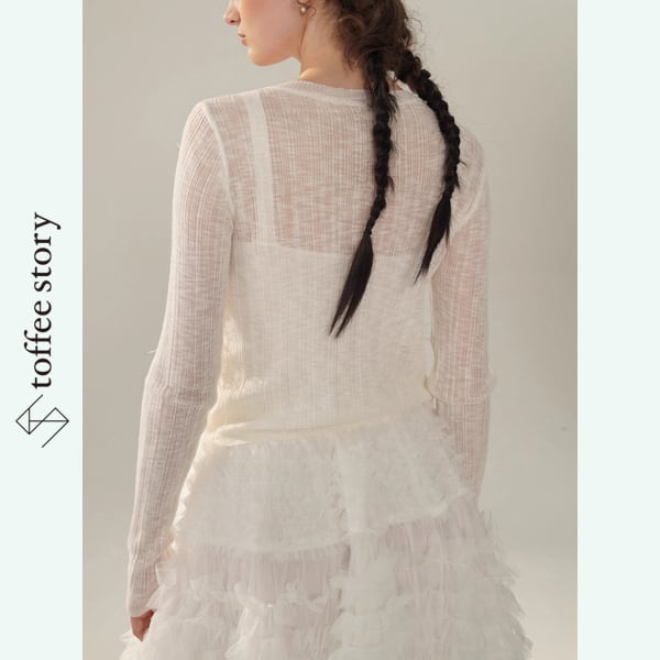 重ねても、単体でも。着こなしに詩的な奥行きをもたらす、アートのようなトップスです。