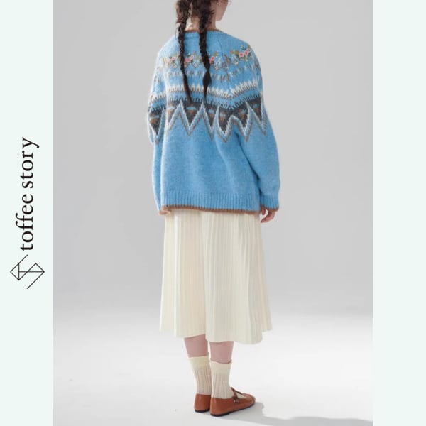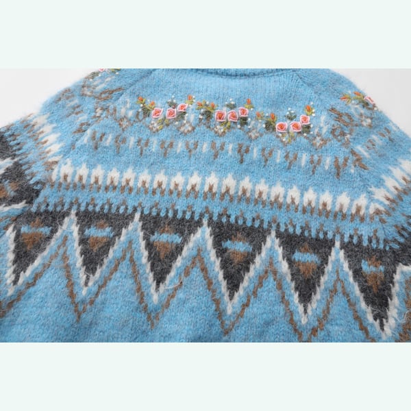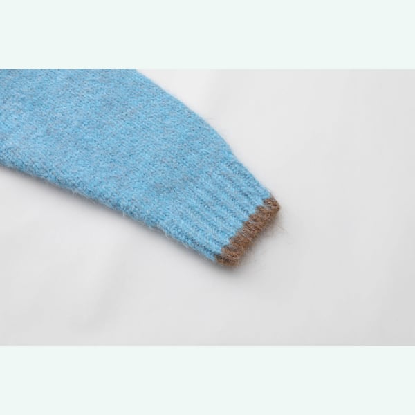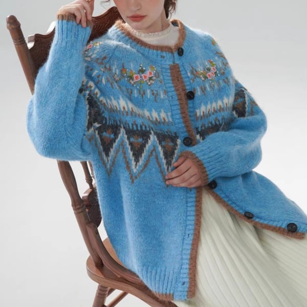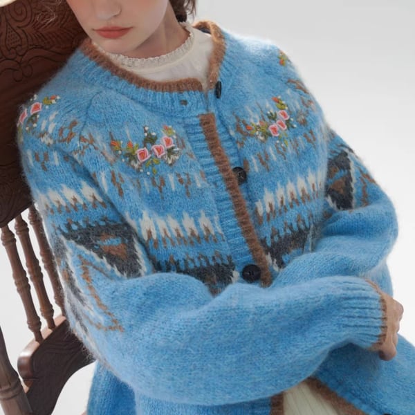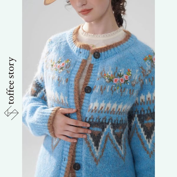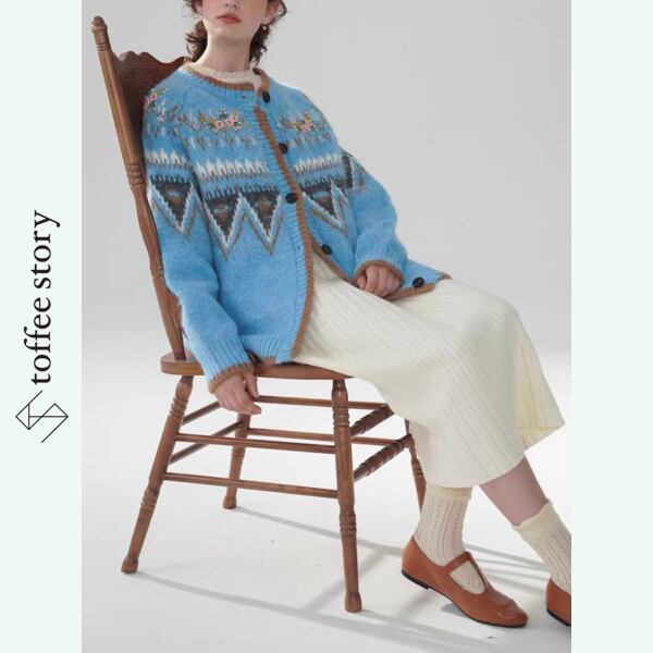 柔らかなブルーに包まれた、北欧の空を思わせるニットカーディガン。