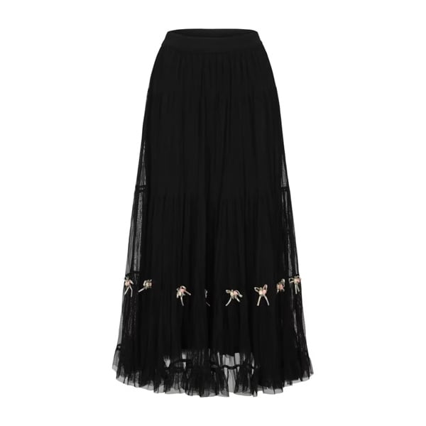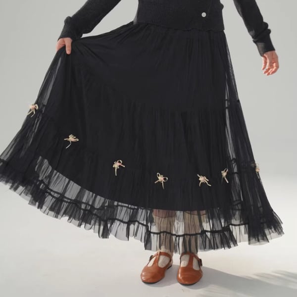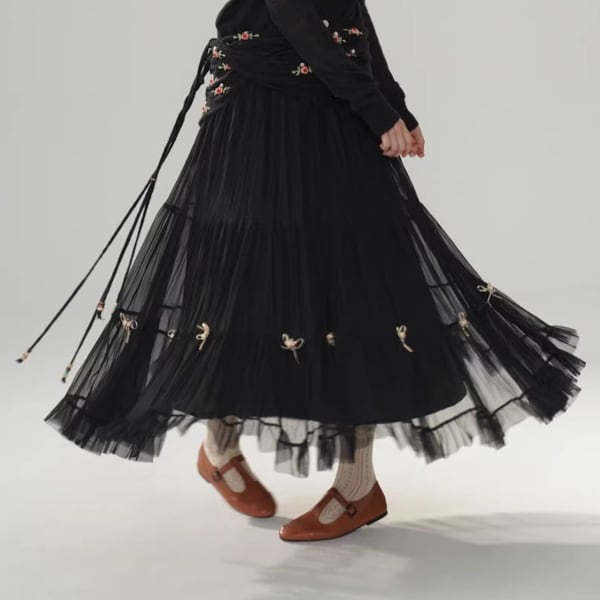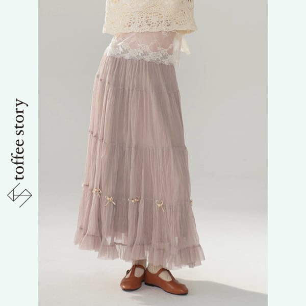 【2color】リボンが舞うチュールの詩スカート《Y0407》