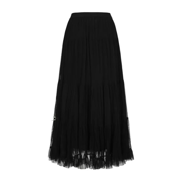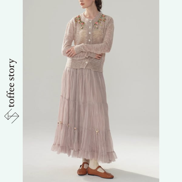Facer Yisenらしい繊細な手仕事が光る、ロマンティックなティアードスカートです。