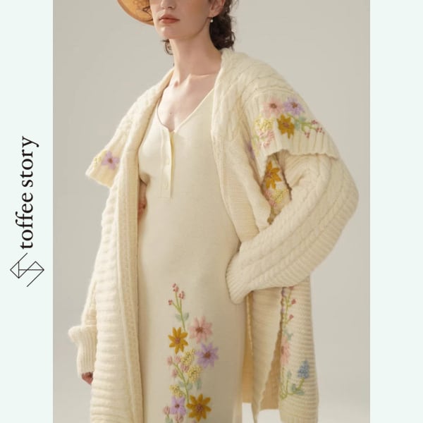 肩やサイド部分には、手刺繍の小花たちがそっと咲き添えられ、Facer Yisenらしいノスタルジックな詩情を感じさせます。