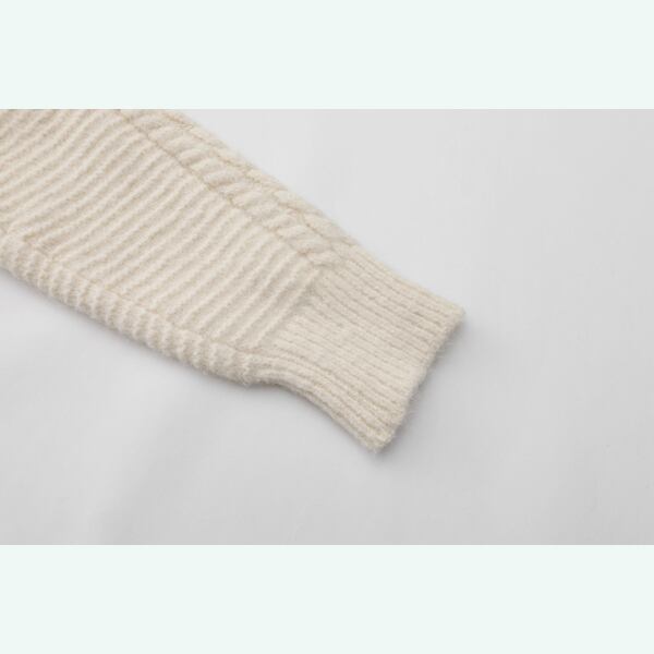柔らかなリブ編みが全体に美しく施された、優しい印象のニットカーディガン。