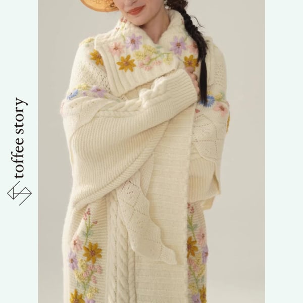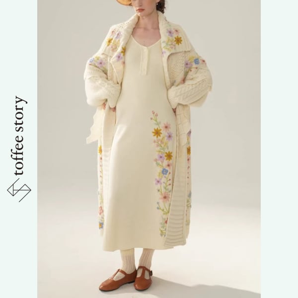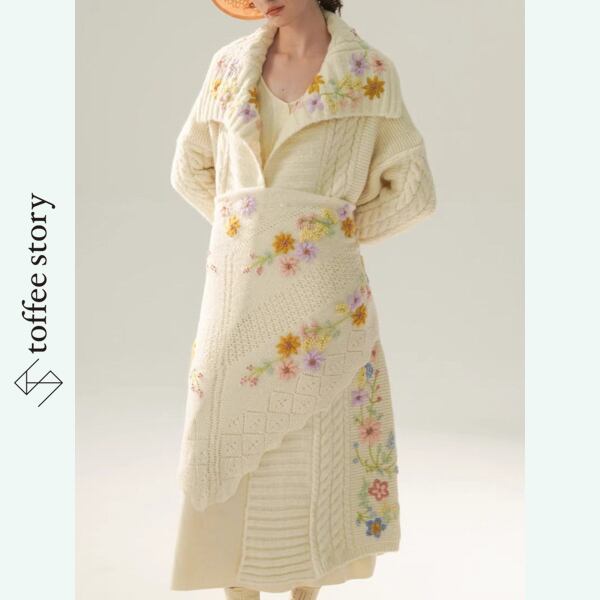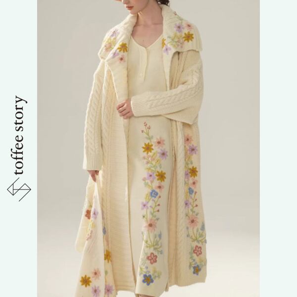 花刺繍ロングニットカーディガン 《Y0415》