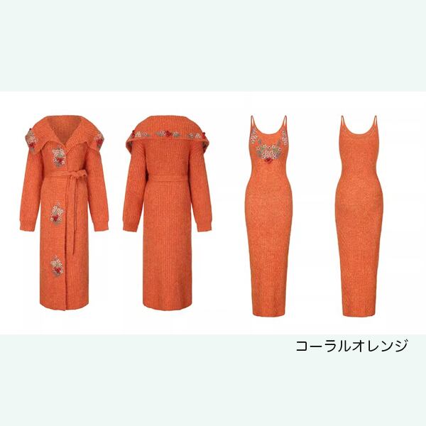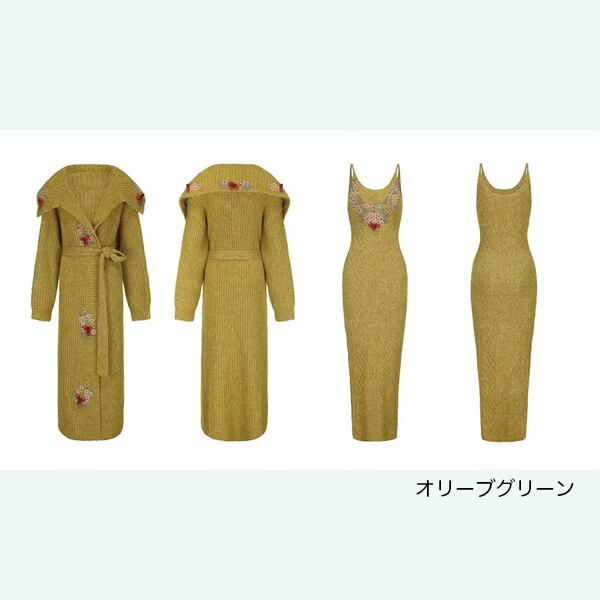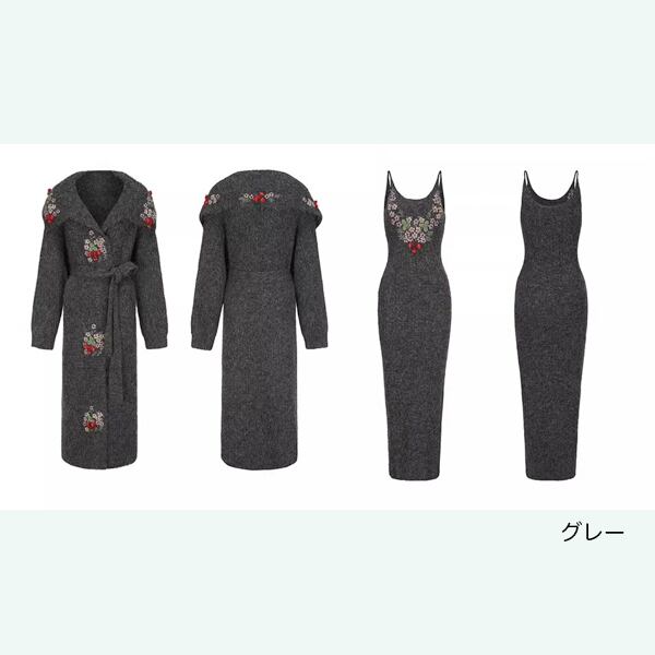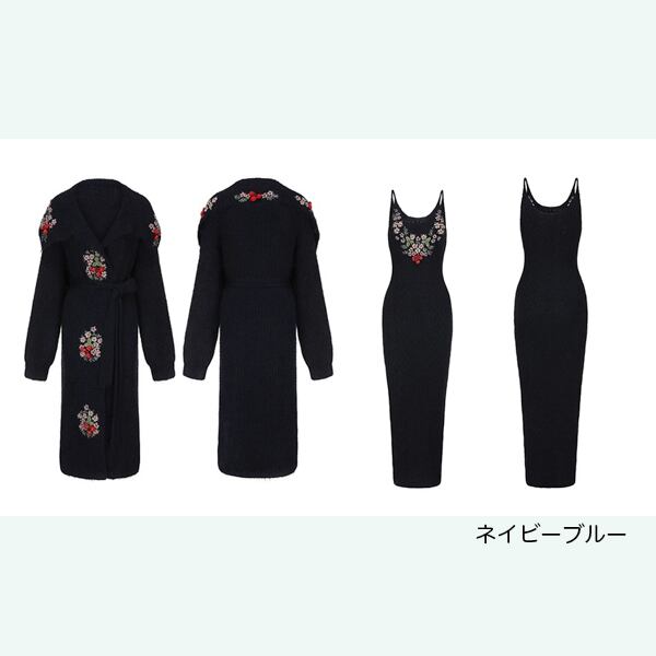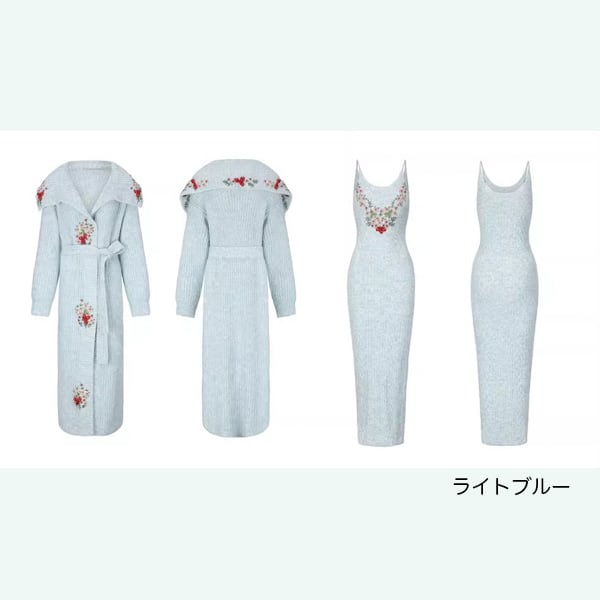 【8color】刺繍ニットワンピ&ローブセット 《Y0418》