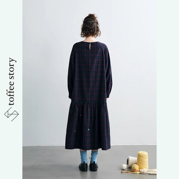 ふんわりとした袖と切り替えのギャザーが、やさしい空気をまといながら、クラシックな雰囲気を引き立てます。