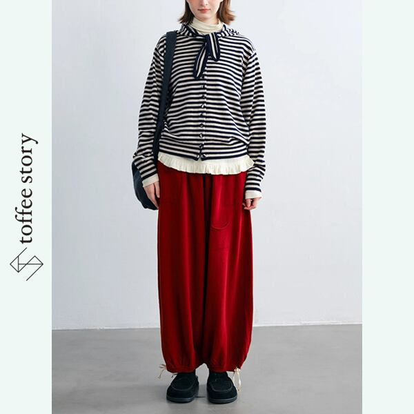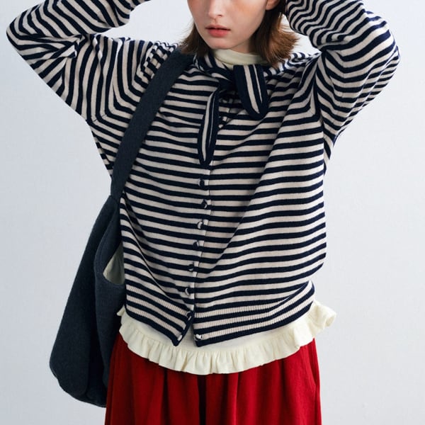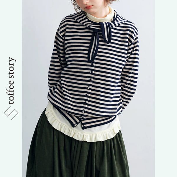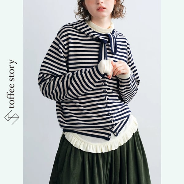 【2color】潮風をまとうボーダーリボンカーディガン 《P0285》