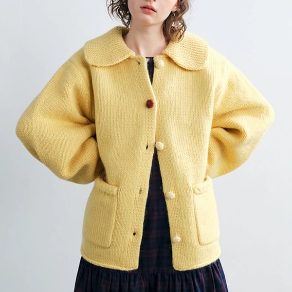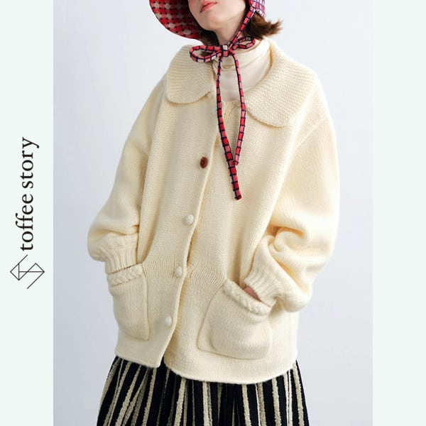 クラシックな丸襟と柔らかなシルエットが織りなす表情は、