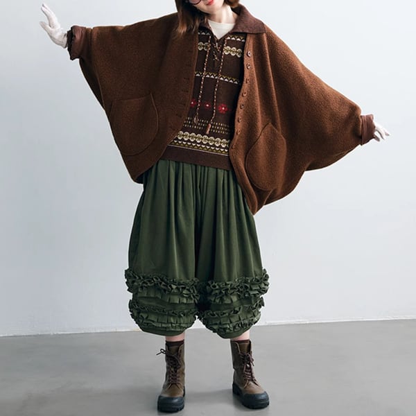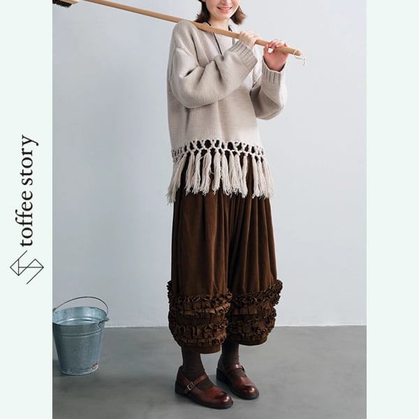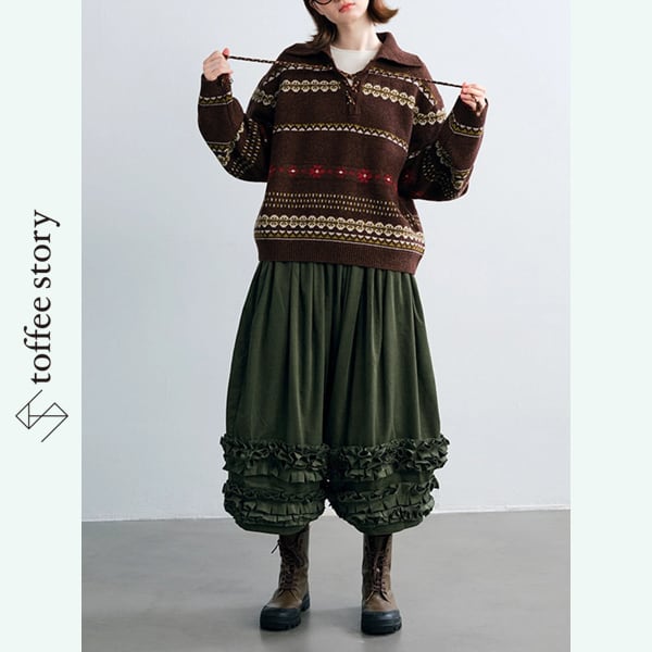 アースカラーの深みが、どんなトップスにも自然に馴染み、季節を問わず心地よい調和を生み出します。