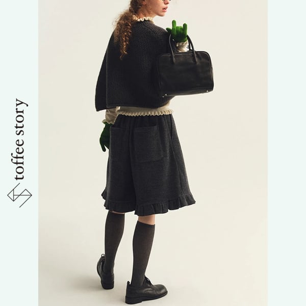 ボトムスは、プリーツが揺れるミモレ丈スカートと、軽やかなひざ丈ショートパンツの2タイプから選択可能。いずれも裾に施された襞が、動きに合わせて穏やかに波を描きます。
