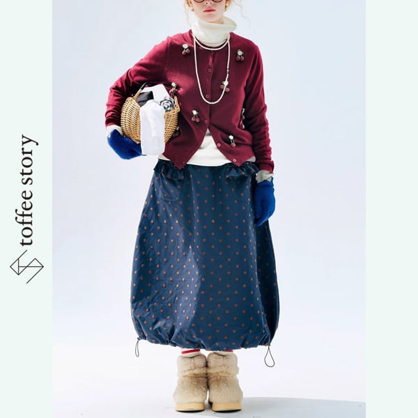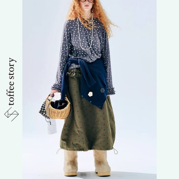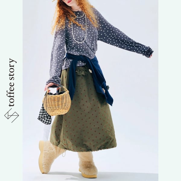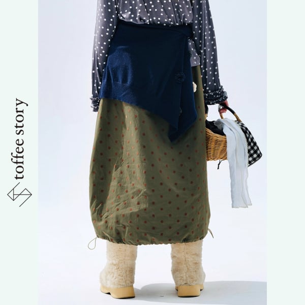 【2olor】ドット×丸みシルエットのアート系ミモレスカート《i0823》