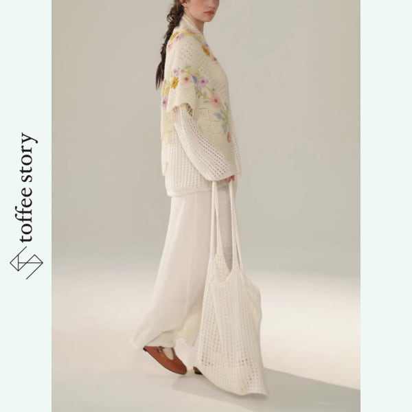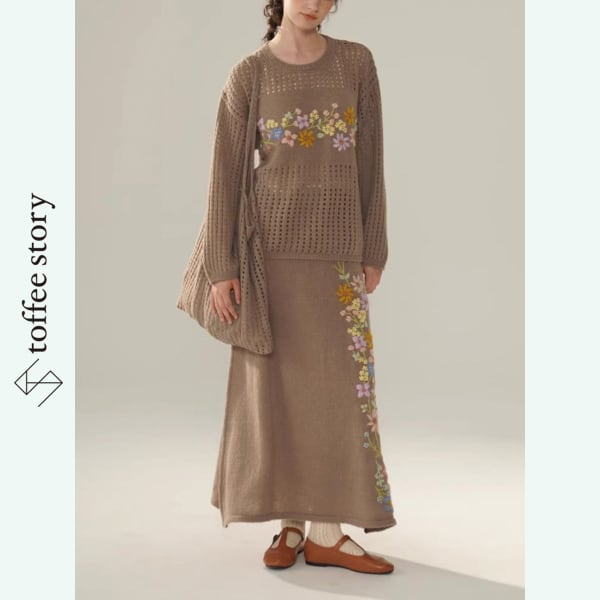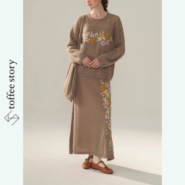 【2color】野花刺繍の透かし編み3点ニットコーデ 《Y0421》