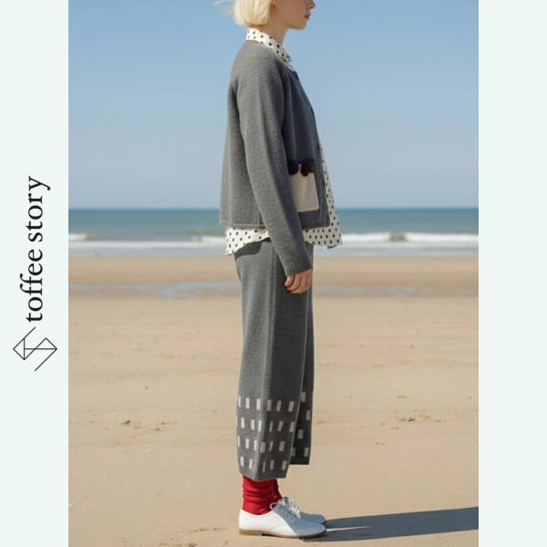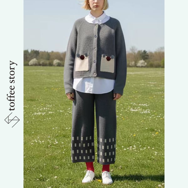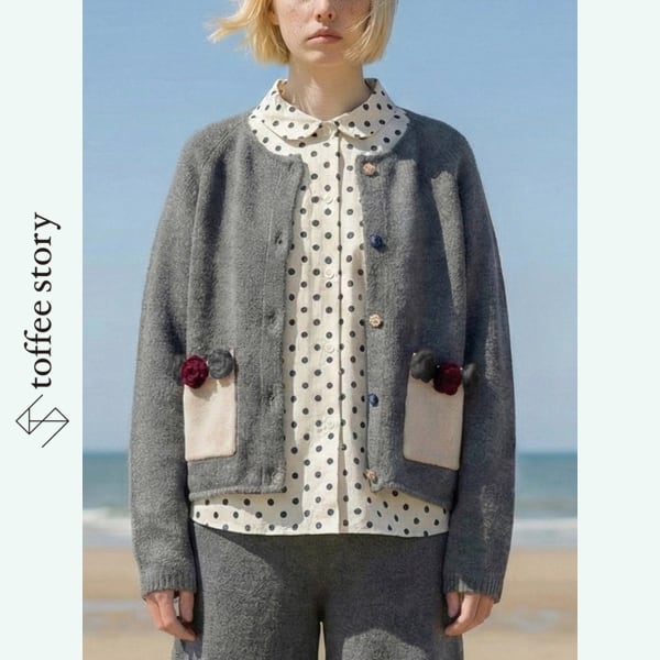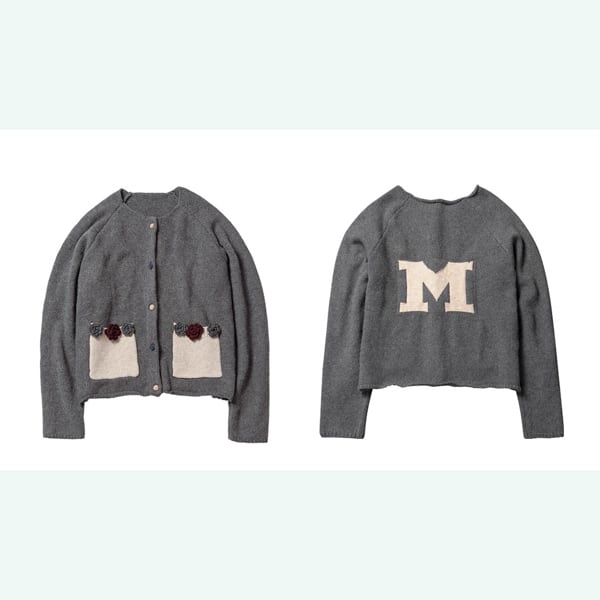 小花の可憐さと“M”の遊び心を宿したグレーカーディガン 《i0834》