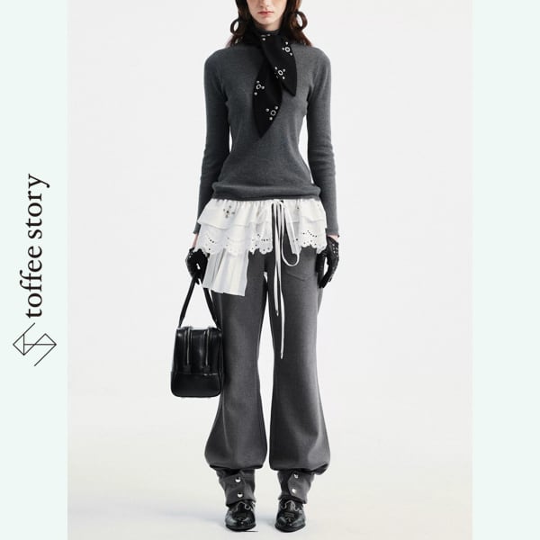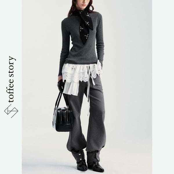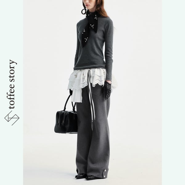 端に潜むウサギの耳のようなフォルムは、布がもう一枚の影を纏ったかのように立ち上がり、首元に淡い緊張を生み出します。