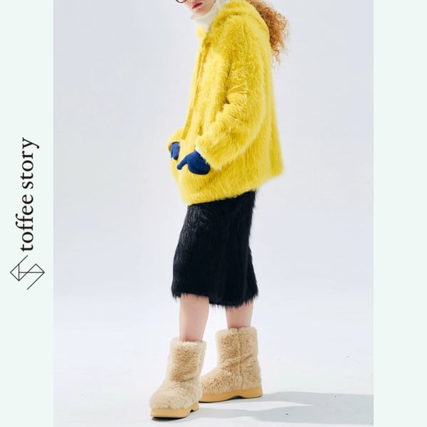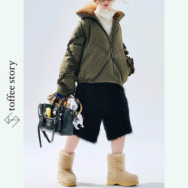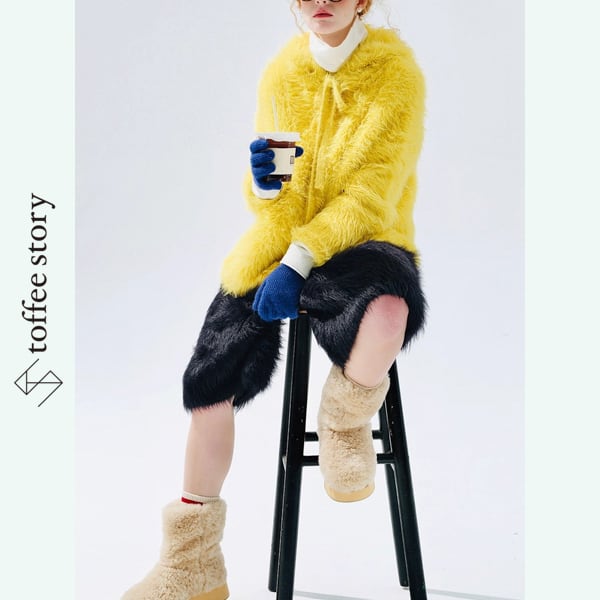 厚手のファーが冬の空気をしっかり抱き込み、季節のスタイリングに立体感と遊び心をプラス。