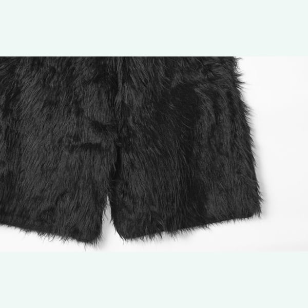 黒の質感が主役になる、ふわふわのフェイクファーショートパンツ。