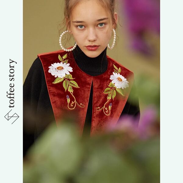 【2color】静かな実りと花咲く刺繍のベルベットケープ 《C0265》