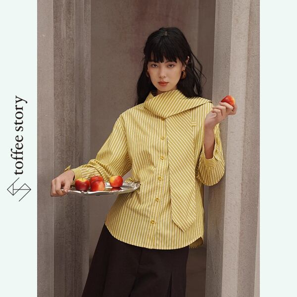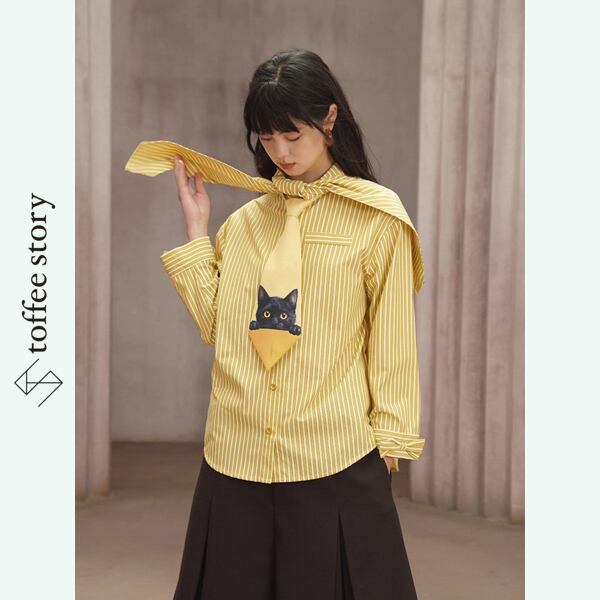 【2color】ノスタルジアの風を帯びたストライプリボンシャツ《C0270》