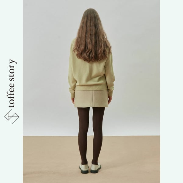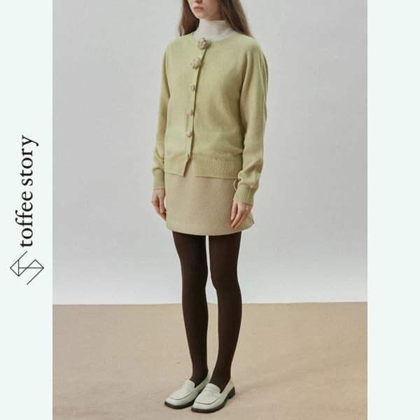 くすんだ黄緑が、冬の灯りにそっと寄り添うように揺れるショート丈カーディガン。