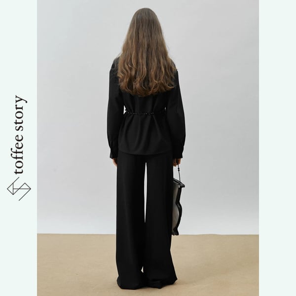 深い夜の静けさをそのまま纏ったようなブラックシャツ。