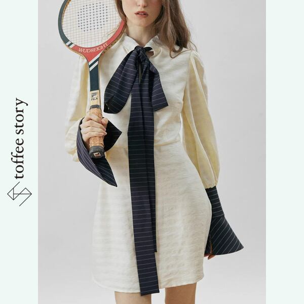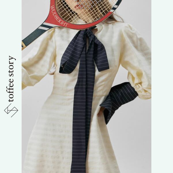 黄の余白に響く線音:ストライプボウタイワンピース《XU0275》