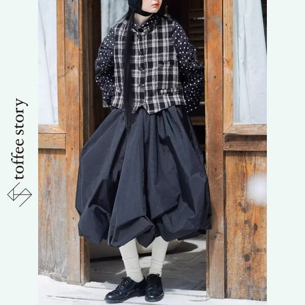 シンプルなニットと合わせれば、チェックの表情がふわりと際立ち、秋冬の空気をやさしく映し出します。レトロでありながらモダン、落ち着きの中に遊び心を潜ませた、WOKEREKERらしいレイヤードの主役となる一枚です。