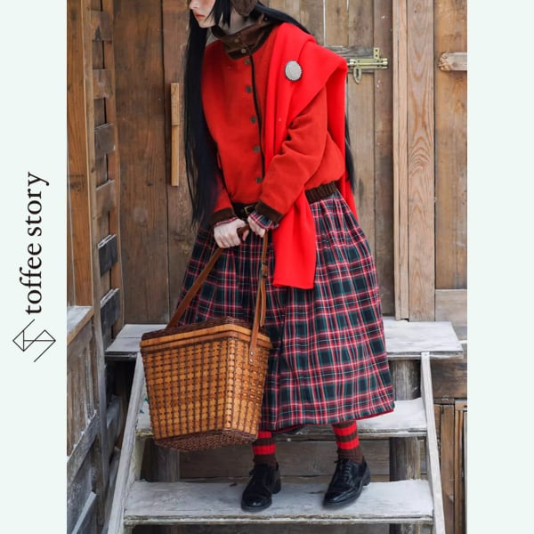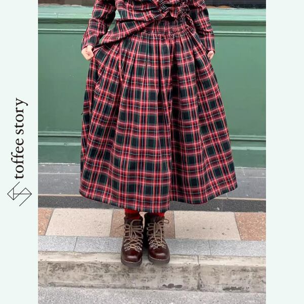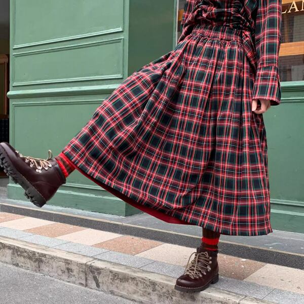 赤の温度をまとう物語 ギンガムの双面ロングスカート《W0220》
