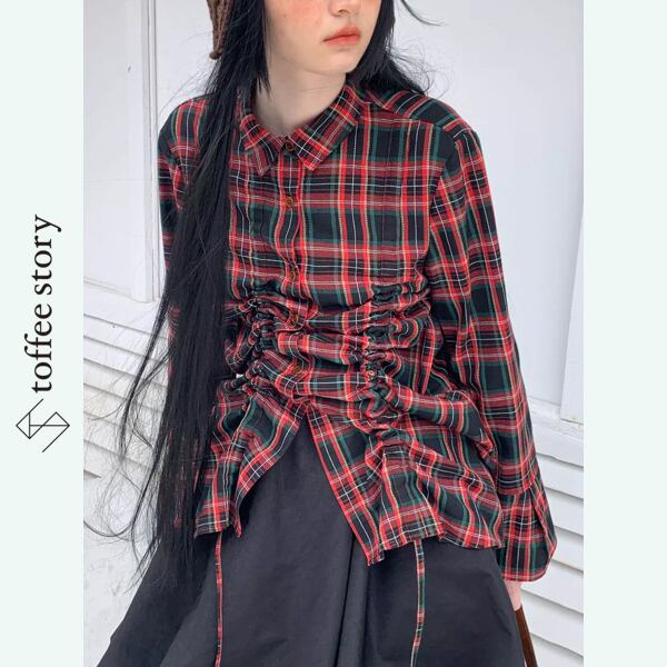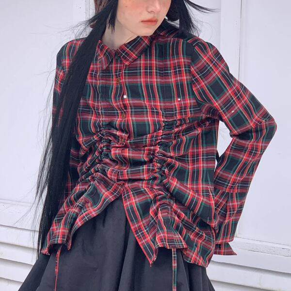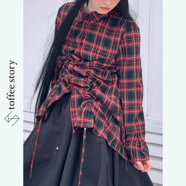 冬の深色タータンと遊ぶドロストデザインシャツ《W0223》