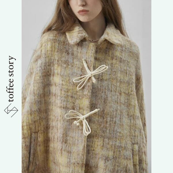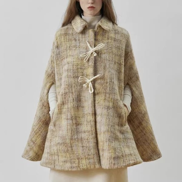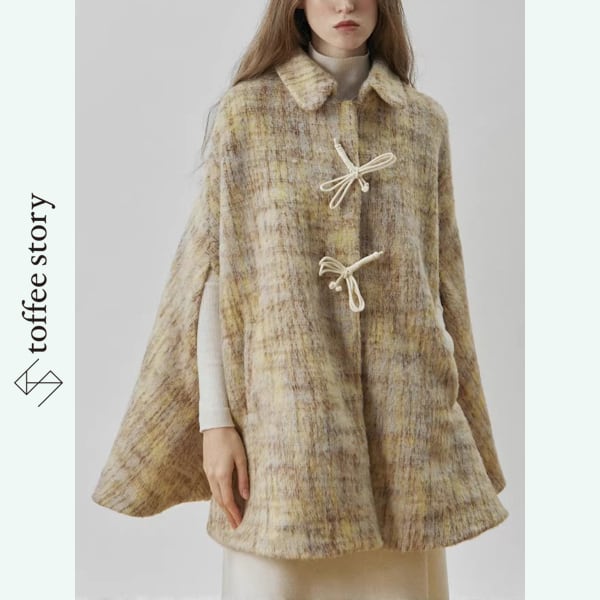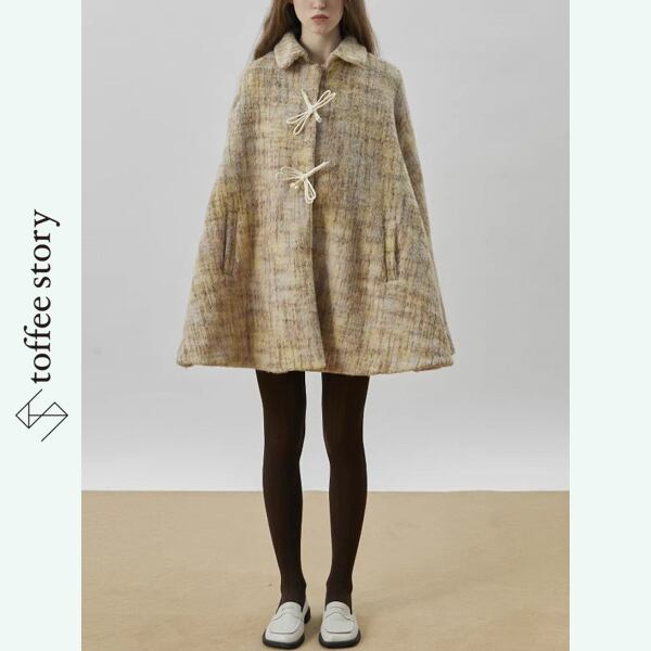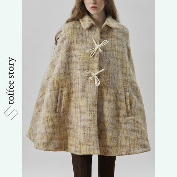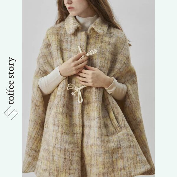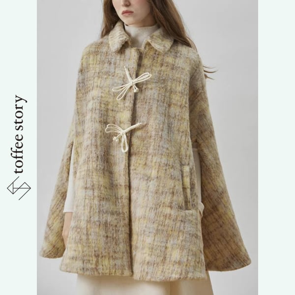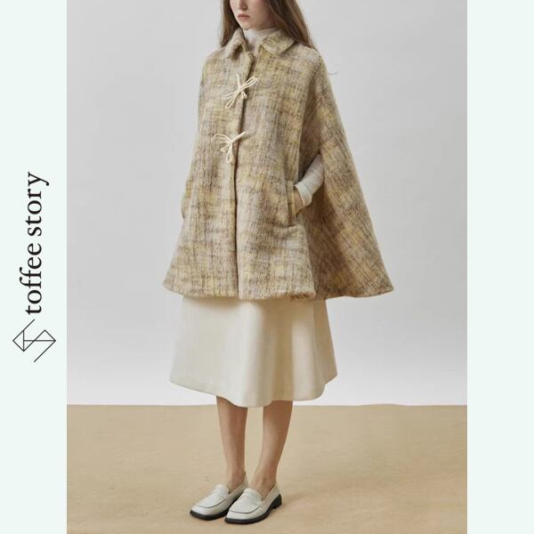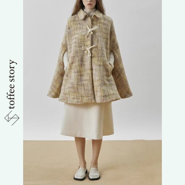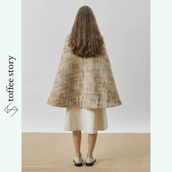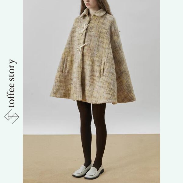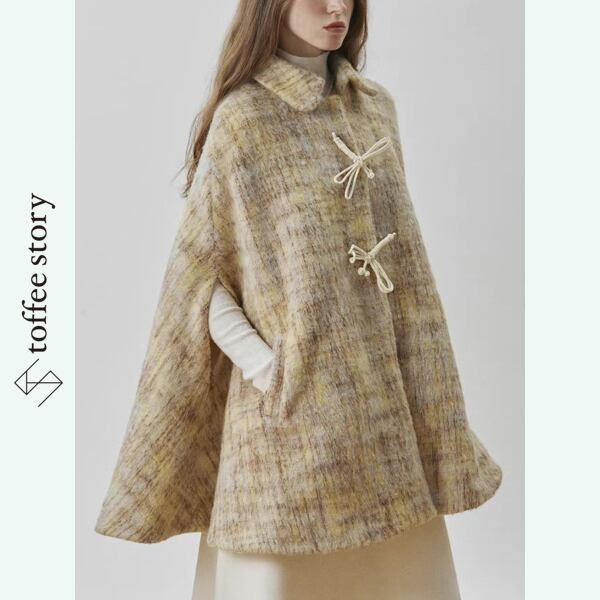 黄みを帯びたブラウンがやわらかく深みを描くケープジャケット。
