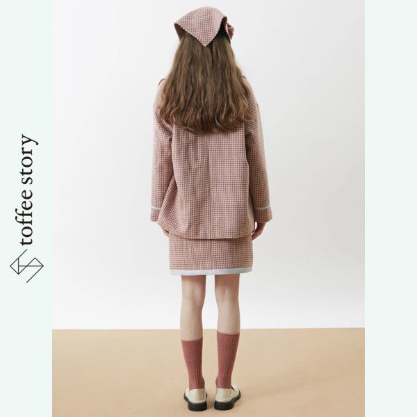 淡彩の格子が揺れる余韻:チェックブレザーコート《XU0286》