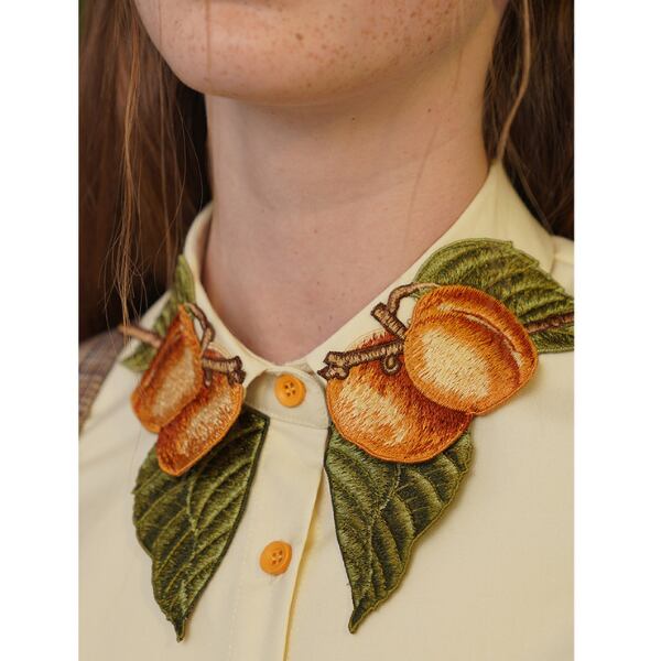 どこか暖かく懐かしさを感じるアプリコット刺繍が魅力のブラウス。