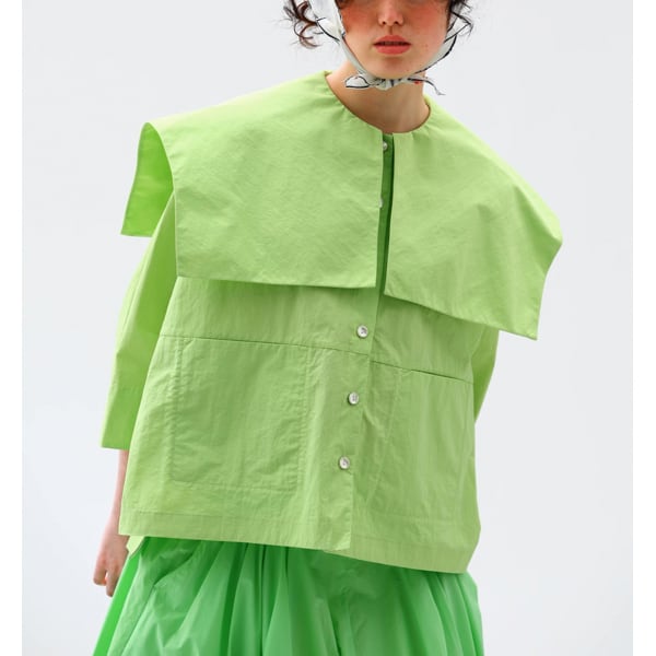 ビッグサイズの襟が目を引くカジュアルなトップス。シンプルなデザインながら、存在感のあるビッグカラーがおしゃれなアクセントに。ゆったりとしたシルエットで体型を気にせず着用でき、ストレスフリーな着心地を楽しめます。デニムやワイドパンツなどと合わせて、こなれたスタイルを演出しましょう♪