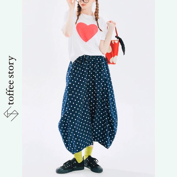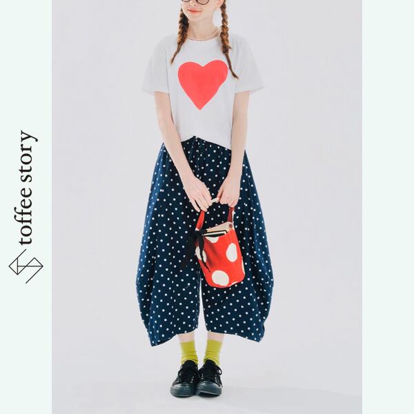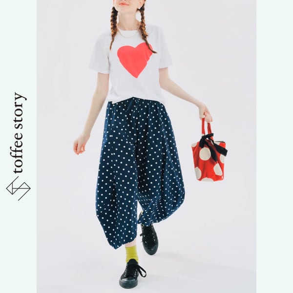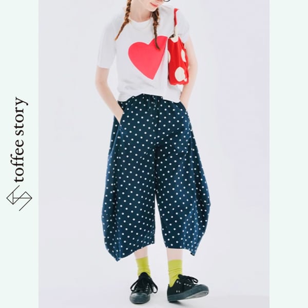 ポルカドット ピュアコットン カーブレッグルーズパンツ i0388