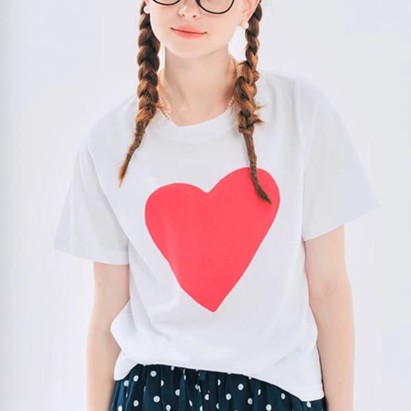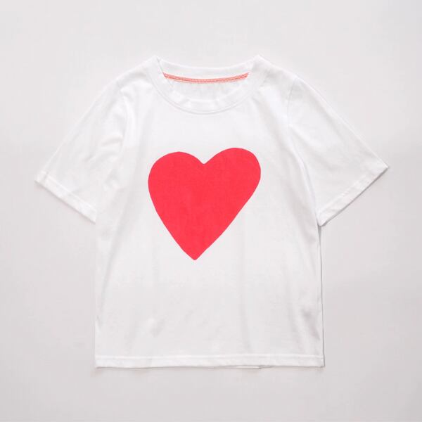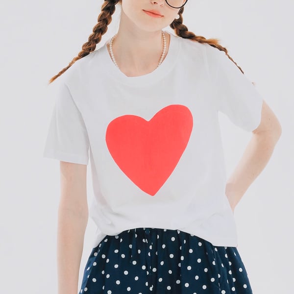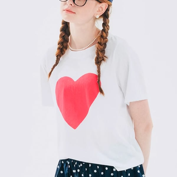 胸元の大きな赤いハートが思わず胸キュンしちゃいそうなホワイトTの登場です。