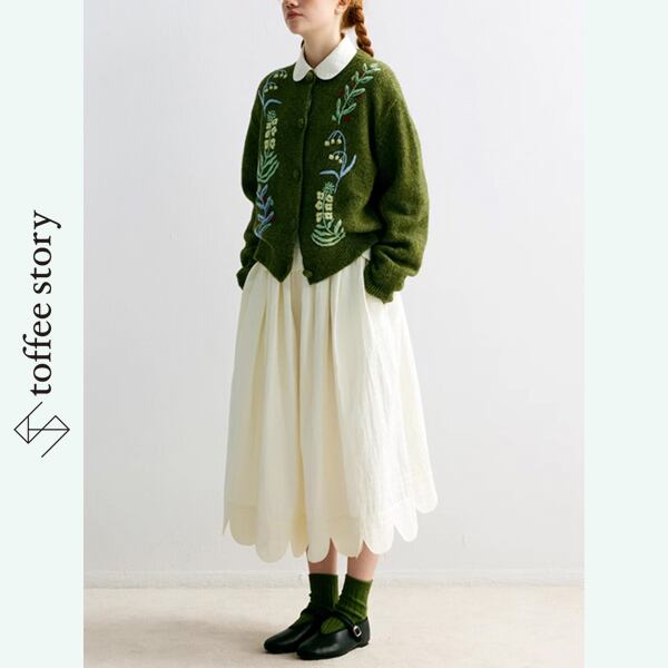 大人可愛いを詰め込んだ、スカラップヘムデザインのロングスカート。スカラップの裾が女性らしい印象を与え、どんなトップスとも相性抜群です。やわらかなベージュとシックなブラックの2色展開で、シーンを選ばずおしゃれを楽しむことができます。