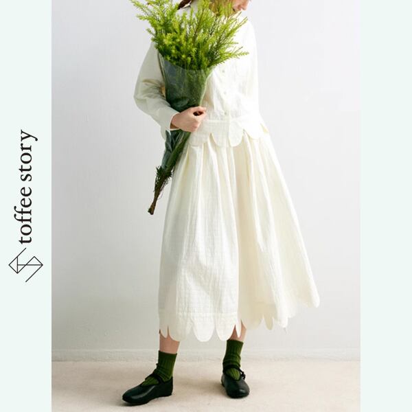 【2color】大人可愛いスカラップヘムロングスカート P0090