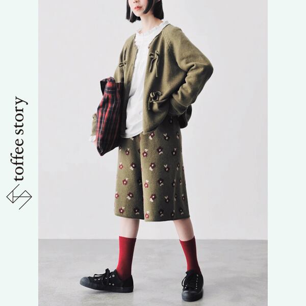 同シリーズのレトロフラワーショートパンツとオリーブグリーンのセットアップコーデと合わせれば、より一層魅力が引き立ちます♪
