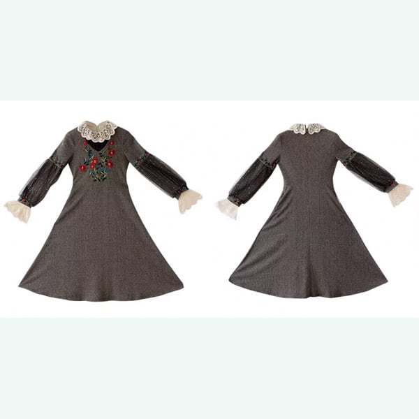 夢を彩るレトロエレガンス:レースのドールカラーとチュールスリーブのロココ調ワンピース Y0187